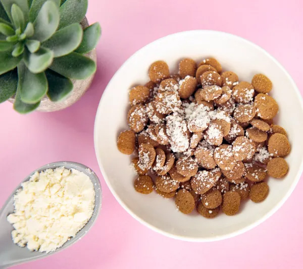 溶けやすい粉末タイプはミルクとしてだけでなく、フードへのトッピングにも使えて、日々の栄養サポートに手軽に取り入れられる一品です。