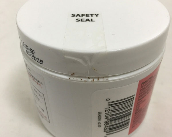 ボトルには未開封シールを貼っておりますが、製造時の関係上、粉がシールまたはボトル周辺に付着している場合がございます。 中身の漏れではございませんので、あらかじめご了承下さいますようお願い申し上げます。