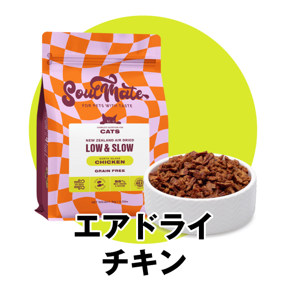 素材の持つ水分を残し特有の柔らかさを実現した「エアドライ製法」で作られたしっとりとしたキブルは、適度な歯ごたえで噛む力が弱い子も食べやすく嗜好性抜群です。