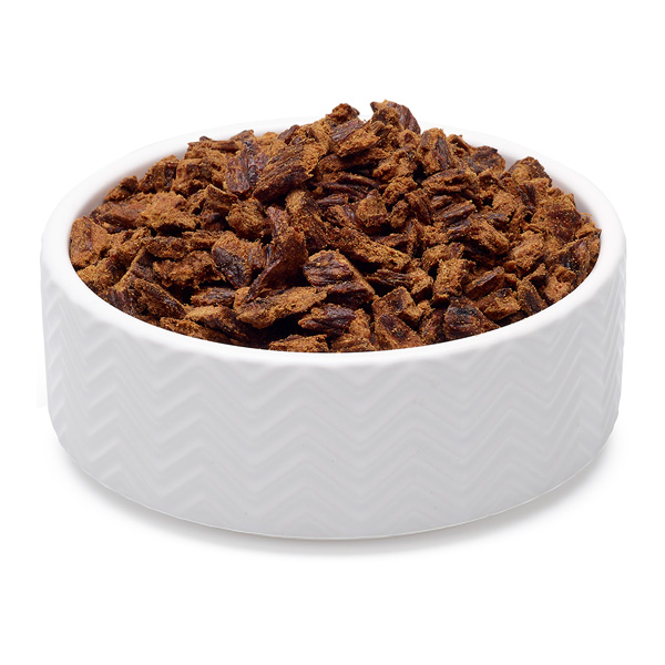 低温でじっくり乾燥させることで、ジャーキーのような柔らかな仕上がりとなり、生食に近い栄養素を残しています。他社のエアドライ製品よりもあえてキブルを厚めに設計することで、食べ応えと嗜好性をさらに高めました。しっとりとしたキブルは適度な歯ごたえで噛む力が弱い子も食べやすく、嗜好性抜群です。主食としてはもちろん、トリーツやトッピングとしてもご利用いただけます。