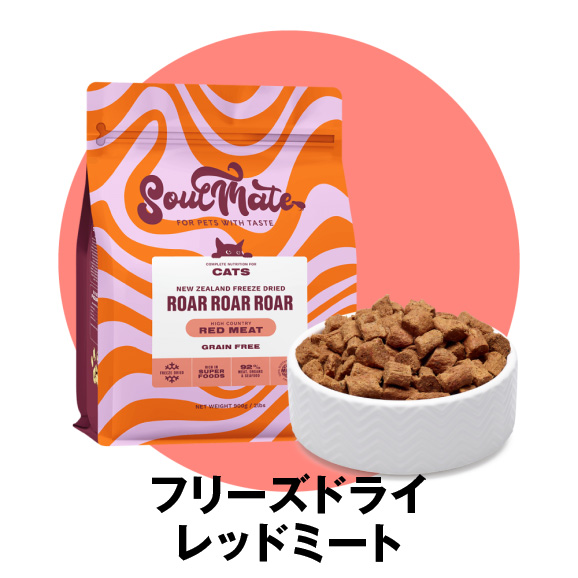 食材を新鮮なうちに加工するため、素材の味と天然の栄養価を保っています。生食に近いフードかつ利便性を求める方に最適なプレミアムフードです。ソウルメイトのフリーズドライは、水で戻さずそのまま与えられるため、より手軽にご使用いただけます。 自然食を与えたい子・食が細い子におすすめです。