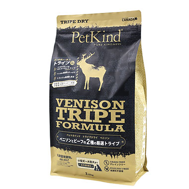 希少なグリーンベニソントライプを第一主原料に、ビーフトライプと新鮮な鹿肉を贅沢に使用。複数のトライプを使い、鳥原料を使わないポートリーフリーフードです。