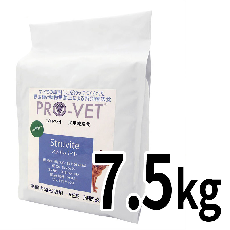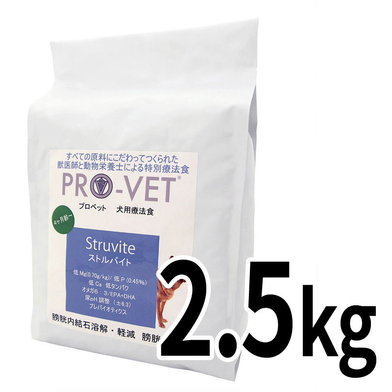 プロベットの「ストルバイト」ドッグフードは、下部尿路疾患のひとつである、ストルバイト結石が気になる愛犬の健康維持と必要な栄養素の供給を目的として開発されました。