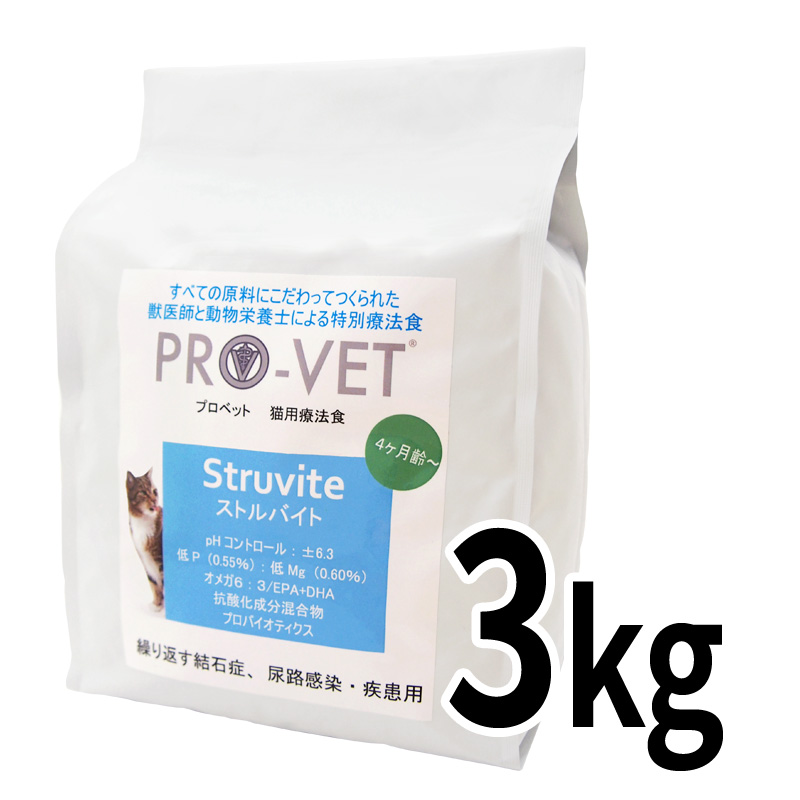 プロベットの「ストルバイト」キャットフードは、下部尿路疾患のひとつである、ストルバイト結石が気になる愛猫の健康維持と必要な栄養素の供給を目的として開発されました。