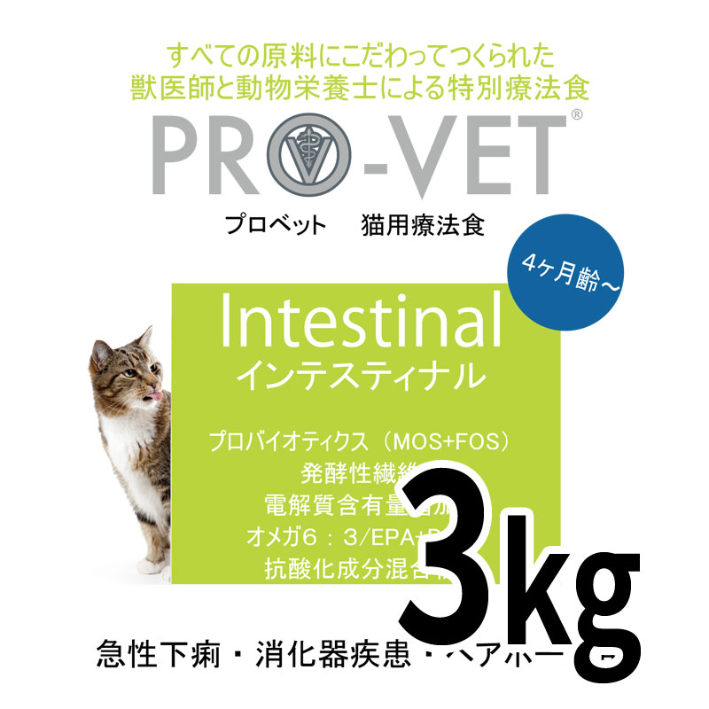 プロベットの「インテスティナル キャットフード」は、下痢や嘔吐など胃腸障害や消化不良などにお悩みの猫ちゃんのためのキャットフードです。